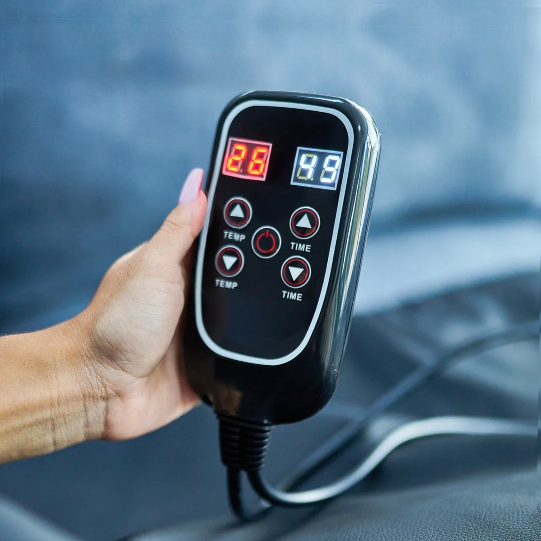 Your perfect session is one click away. The simple, handheld controller gives you precise, one-degree temperature control and a built-in timer for a completely personalized heat experience.